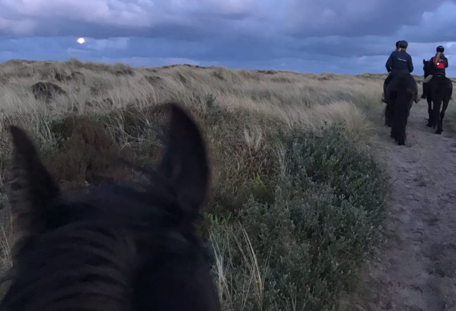Een buitenrit in het maanlicht is echt magisch. Geniet van de intieme rust en het zilveren licht dat over het eiland schijnt. Zodra de zon ondergaat, rijden we de opkomende volle maan tegemoet. Een sfeervolle tocht door de duinen, het bos, langs cranberryvelden en over het strand. We rijden altijd in kleine groepen van maximaal 6 gasten. We maken deze bijzondere avond buitenrit met zowel beginners als gevorderden. Deze unieke Puur ervaring sluiten we gezellig samen af bij een kampvuur met marshmellows.