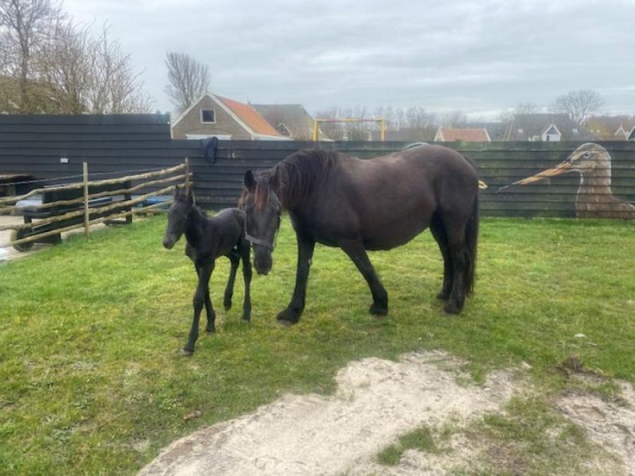 From the moment Jesse was born, he was already a little rascal. The first day he was allowed into the paddock, he immediately worked out that you don't just have to stand behind the electric wire, but can simply walk right through it. That day, he was on the wrong side of the fence no fewer than five times. Mother Lotte wasn't having any of it - she kept running after her far-too-early-pubescent son instead of the other way around. Fortunately, Jesse has shaped up since then and now loves coming along on rides. Although he's certainly still a bit of a rascal, he's also wonderfully well-behaved and sweet. Under supervision or with an advanced rider, Jesse couldn't be happier when he's allowed to join in.